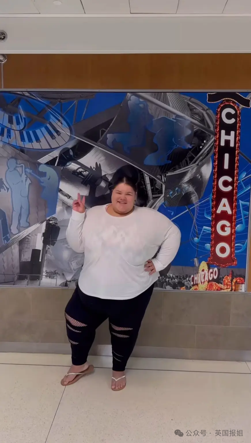 目测体重超过300斤的杰琳,身材已经影响到了健康。