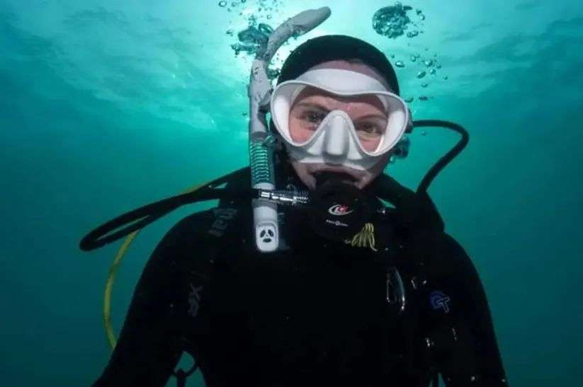 一天,她在一家潜水用品店跟一名男子聊天,提到了她的海底奇遇记。