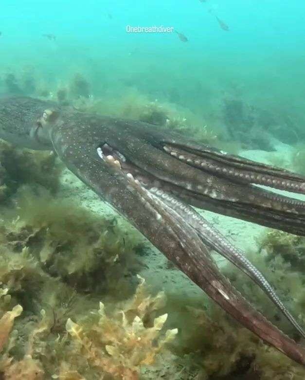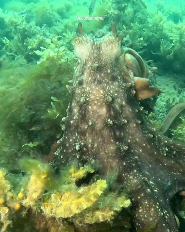 那天朱尔斯像往常一样在莫宁顿半岛海域遨游,这时,一只大块头的毛利章鱼吸引了她的注意力。
