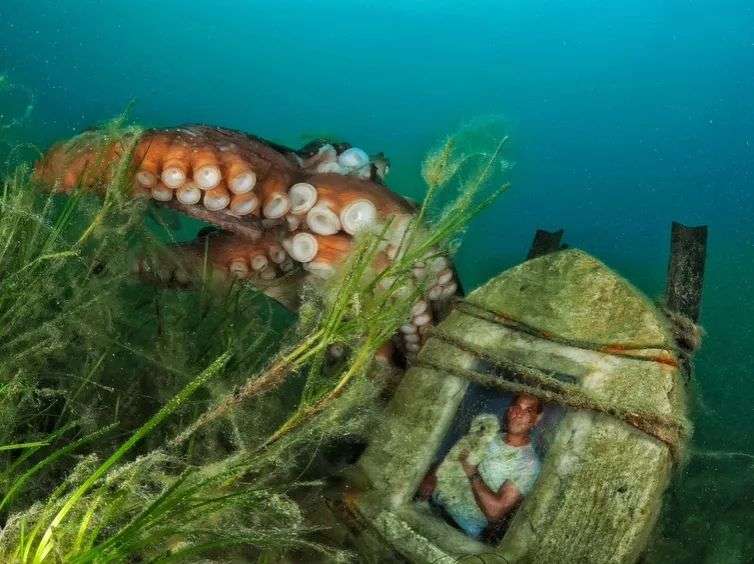 “章鱼认出那是个人,以为他被困在水里了,想帮助他。”