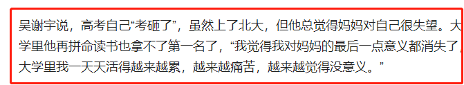原因如其所言:虽然上了北大,但我总觉得妈妈对自己很失望。