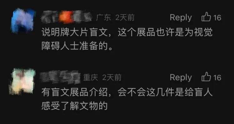 也有一些细心的网友发现,在该博主拍摄的视频里,被触摸文物的下方铭牌上有大量盲文,是否说明该文物是专门为残疾人士设置的仿制品,并不是真品?