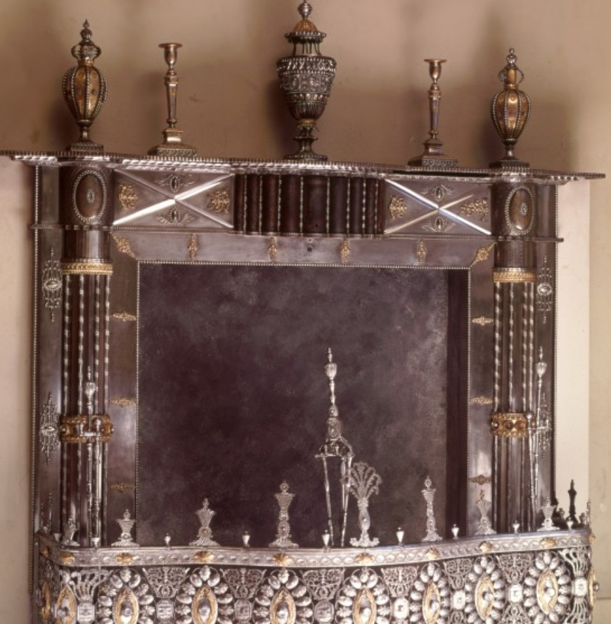 另一件可触摸的物品是一个钢制壁炉,它是由俄罗斯图拉皇家武器工厂于1770-1800年左右制造的。壁炉由锻造和切割的钢材制成,配有挡板、火铁、工具和装饰品。