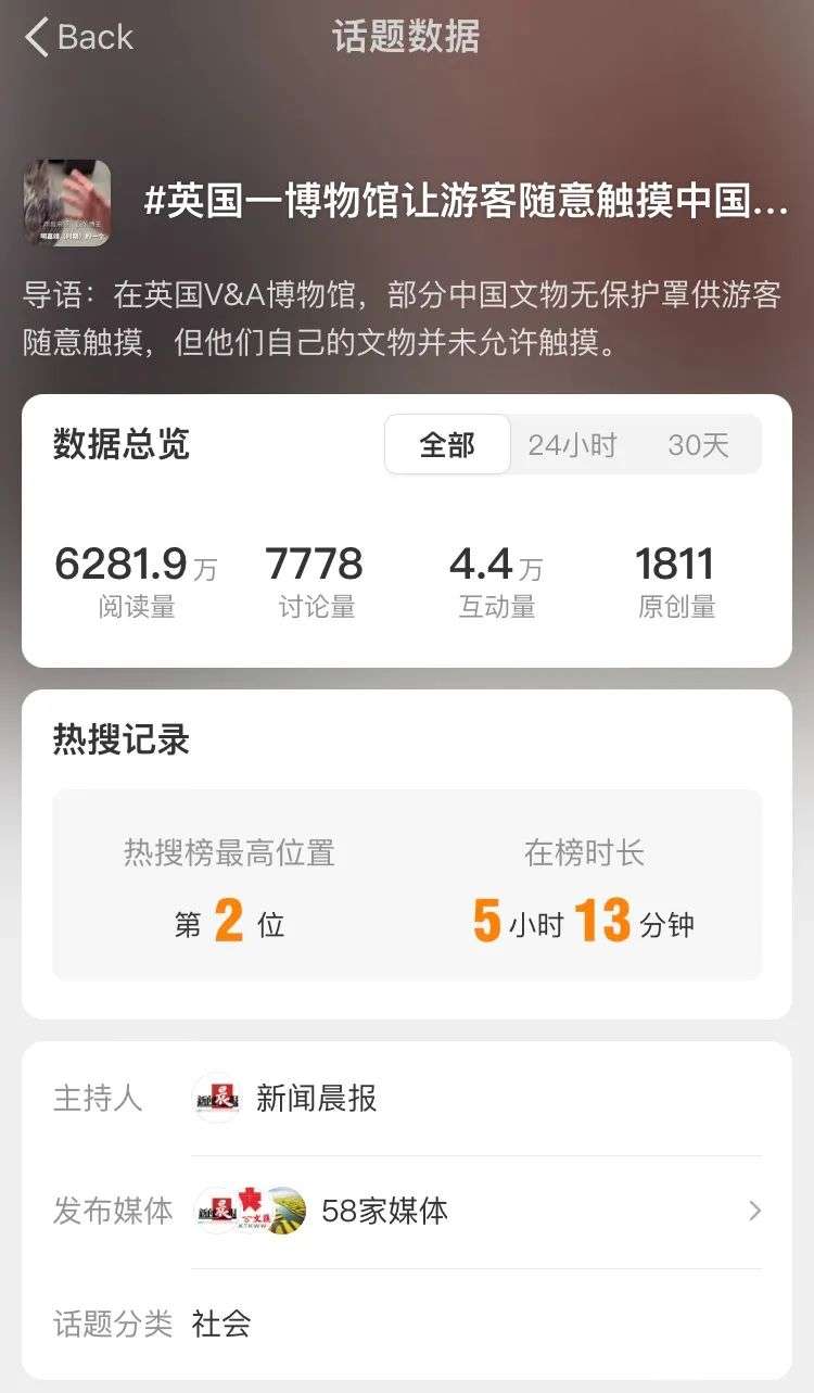 该视频一发布立即引起了广大网友的愤怒之情。“英国一博物馆让游客随意触摸中国文物”的词条也立马登上了微博热搜。