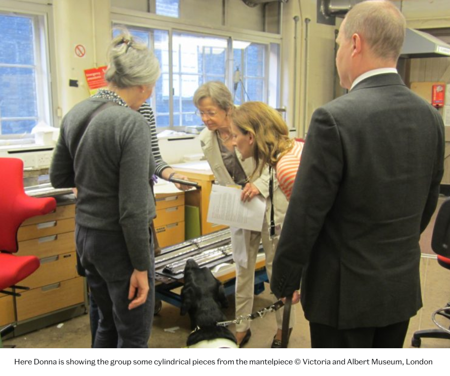 在早期的活动中,来自18世纪法国的一件带有洛可可风格的橡木凸起就被选中作为可触摸的物品供游客触摸。“凸起”是建筑术语,指的是木头或石头的凸起。它们通常位于拱形天花板的交叉处,但V&A展示的这件凸起可能被用作墙壁或门板。
