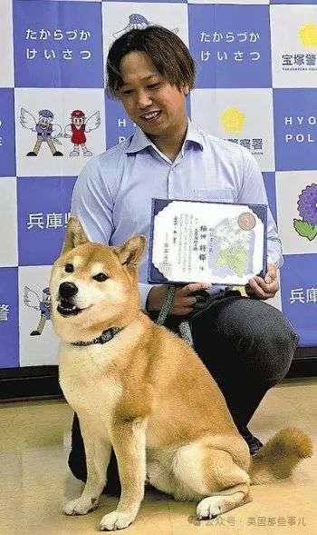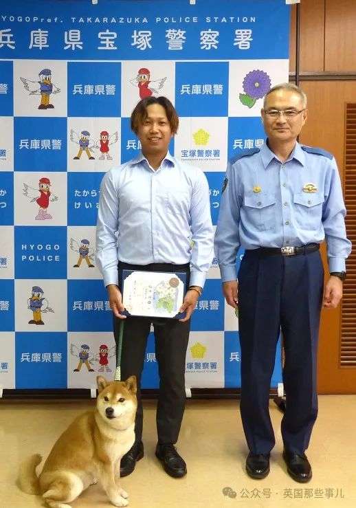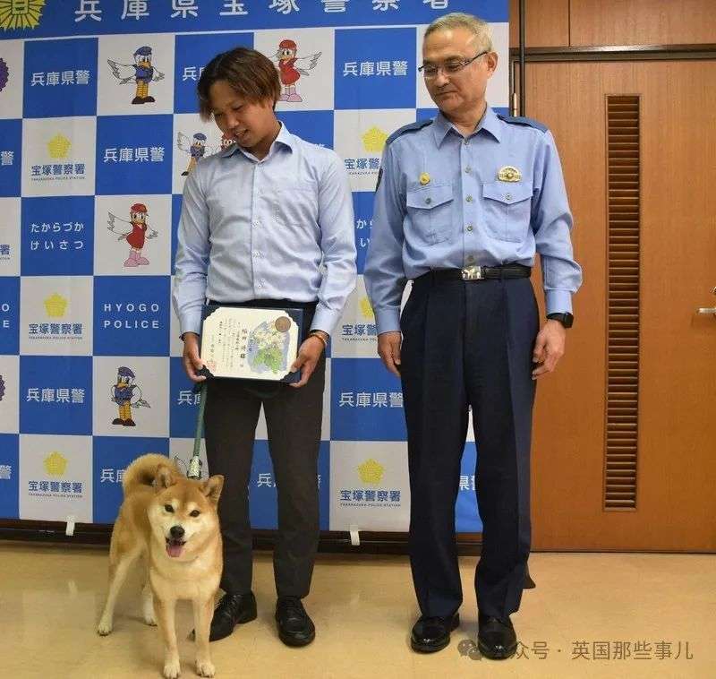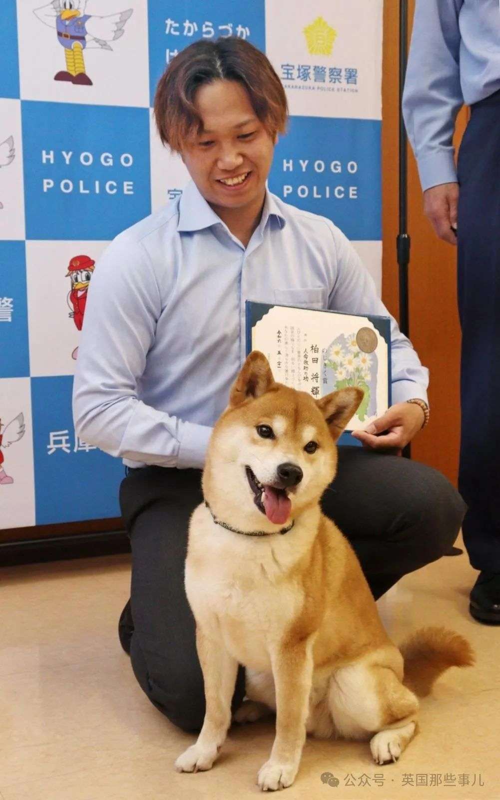 5月21日,兵库县宝塚警署为柏田将辉和狗狗颁发了奖状。