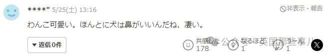 “狗狗好可爱。狗狗的鼻子真是太厉害了!”
