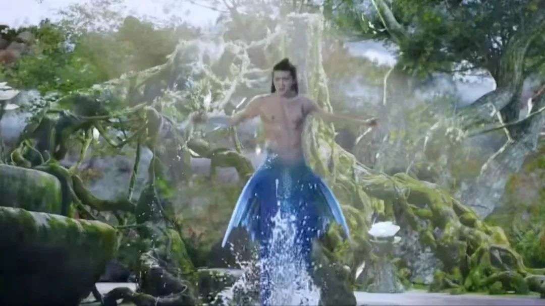 这种美人鱼的设定需要男演员露上半身,按理说是营销自己努力健身增肌的好机会。