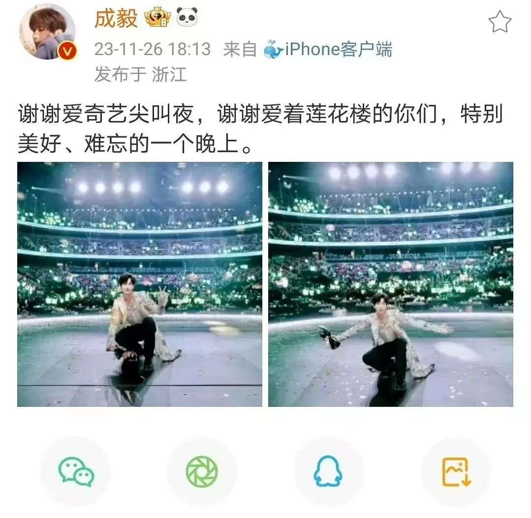 比如成毅微博会发和粉丝的大合照,被采访不忘感谢粉丝。