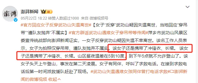 收藏那个穿裙子反穿武功山的27岁女孩,不幸遇难了......