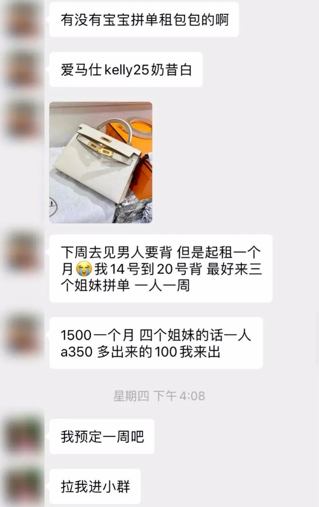 但“名媛”还是觉得贵,准备再拉三个女孩一块拼,算下来每人出400块就能背上爱马仕,这不是天大的便宜?