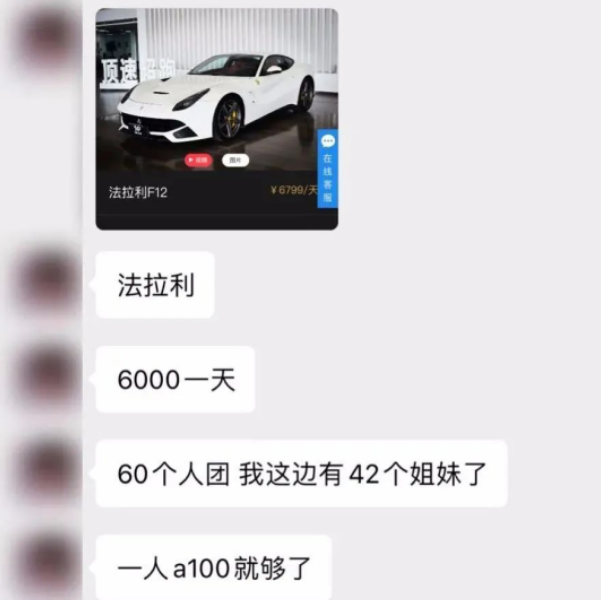 几百万的法拉利F12,60人团租,一人出100就能开得起。