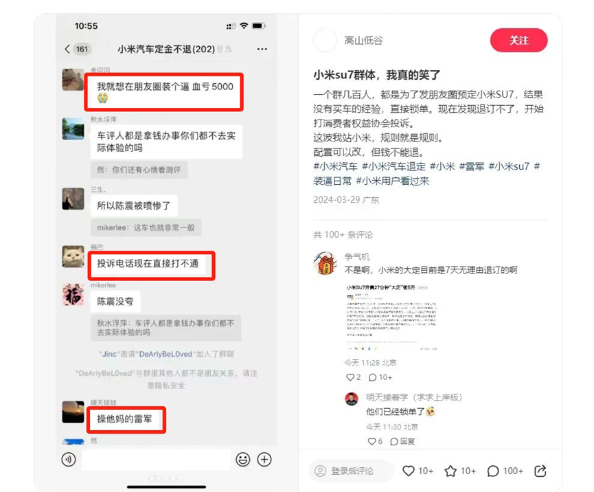 发现钱退不回来后,他们怒骂雷军,打消费者权益协会电话投诉,谎称自己是误触才锁单……