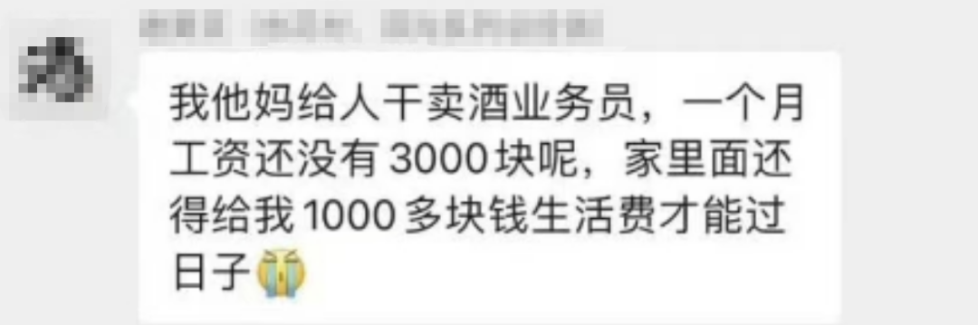 还有人哭诉,一个月工资还没3000,靠家里人多给1000块生活费才能过日子。