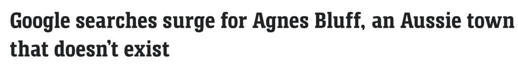 本月,对“Agnes Bluff”小镇的搜索量达到了历史最高水平,全国乃至全世界的人们都想知道它在哪里。