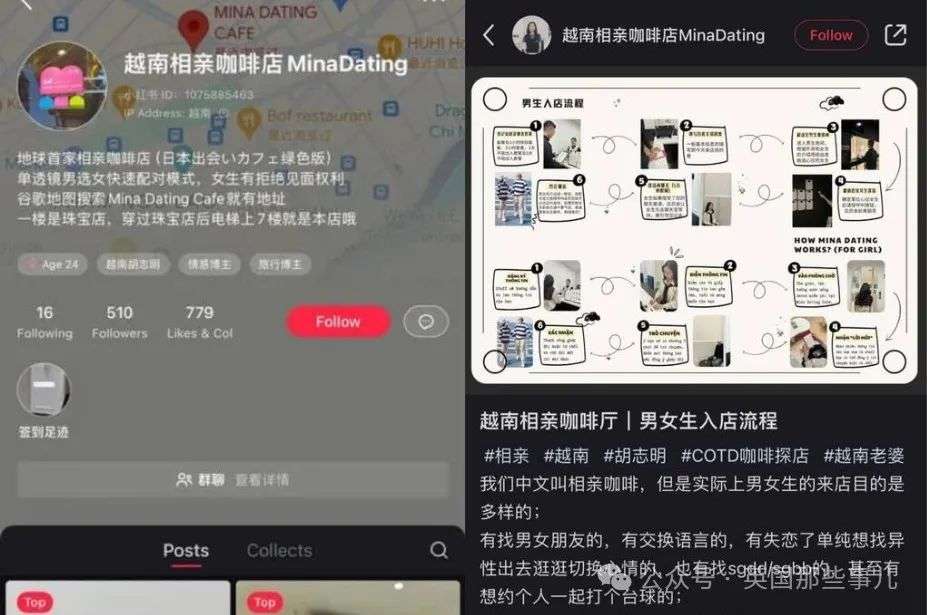 在TikTok、Instagram、Facebook等平台上,他们会针对女性受众的兴趣,发相关的帖子吸引想找漂亮咖啡馆打开拍照、想找人聊天的女性。