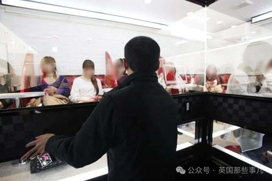 日本的这类咖啡馆,男顾客能隔着单向玻璃跟女孩聊天,如果觉得合适,两人可以继续约会。
