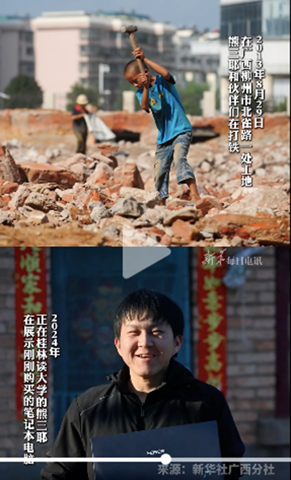 新华社最近发布了一个视频,内容是:曾经走悬崖边上学、在工地打铁,这些孩子现在怎么样了?