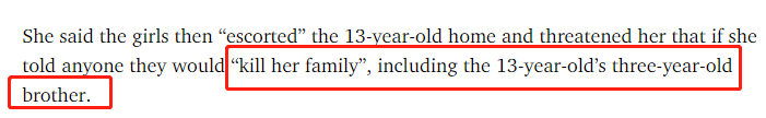 抵达受害人住所后,3名施暴者还偷走了一把直发器和香水,并威胁女孩:“今天的事情你不能和任何人说,否则我们会杀你全家,包括你3岁的弟弟。”