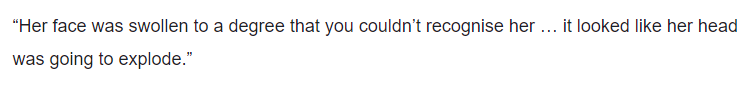 这场殴打导致女孩一只眼睛暂时性失明、手腕骨折、身上的淤青和伤口数不胜数,3名施暴者还跟着受害者及其家人一同前往医院,确保受害者不会说出事情真相。