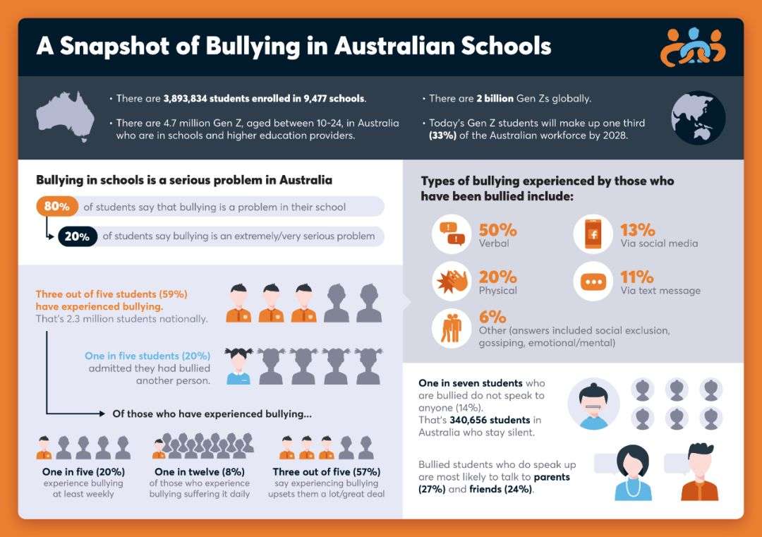 这个数字也意味着,澳洲孩子在校园里遭受霸凌的可能是