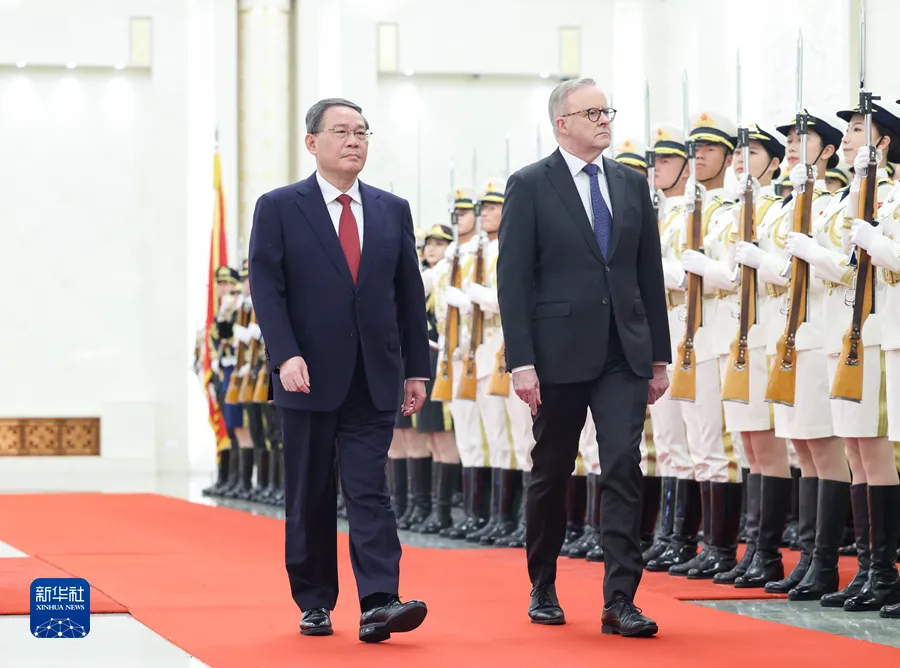 2023年11月7日上午,李强总理在北京人民大会堂同来华进行正式访问的澳大利亚总理阿尔巴尼斯举行会谈。