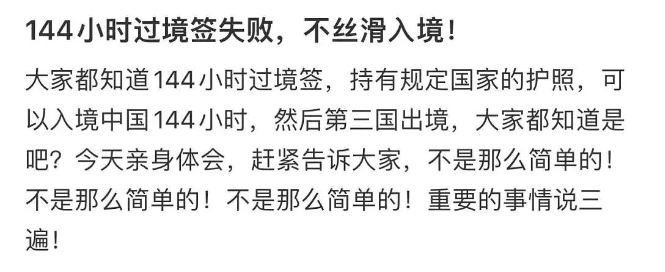 这名华人网“144小时过境签”政策,亲身体验后赶紧发帖告诉大家:“不是那么简单的!不是那么简单的!不是那么简单的!重要的事情说三遍!”