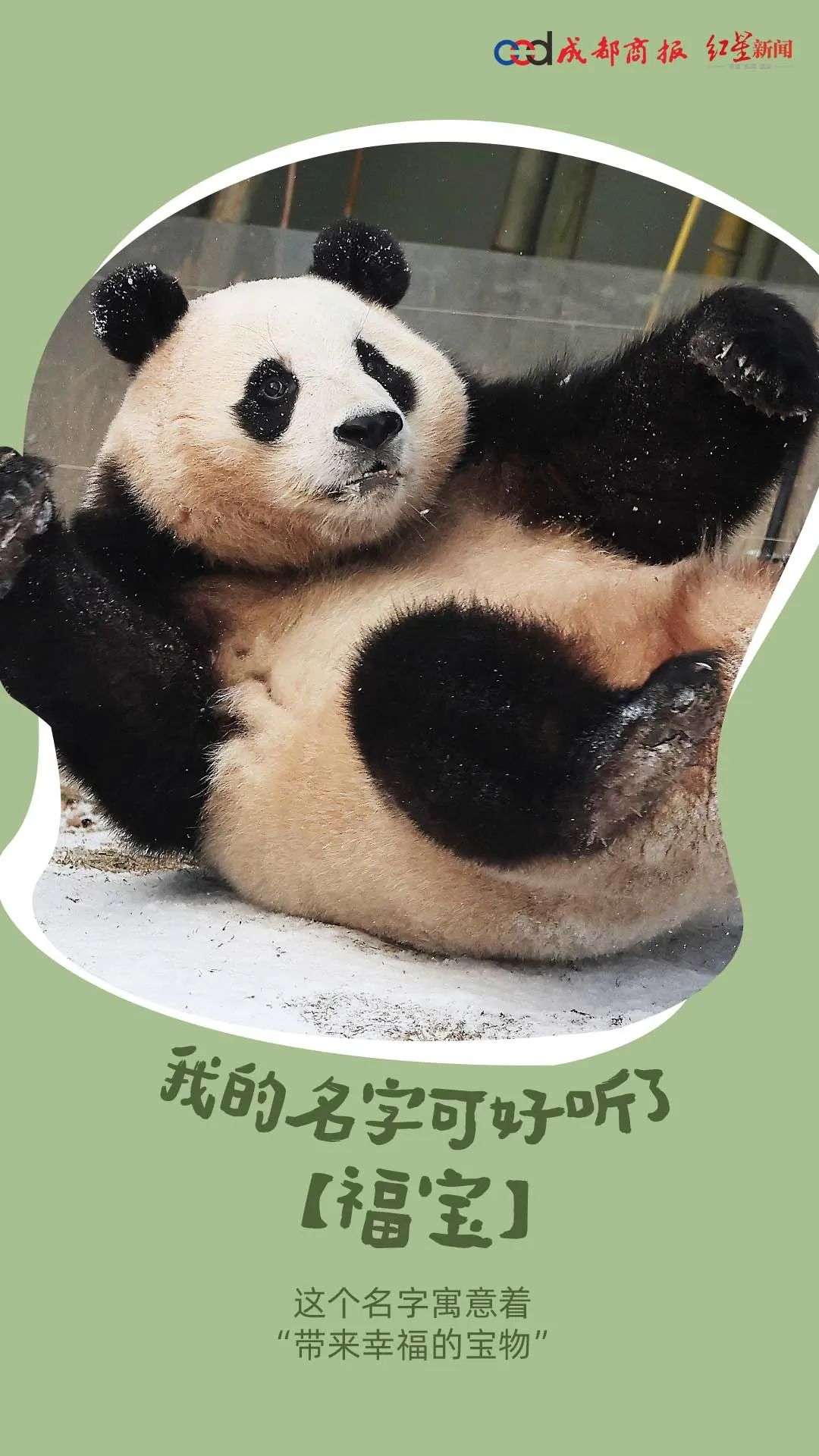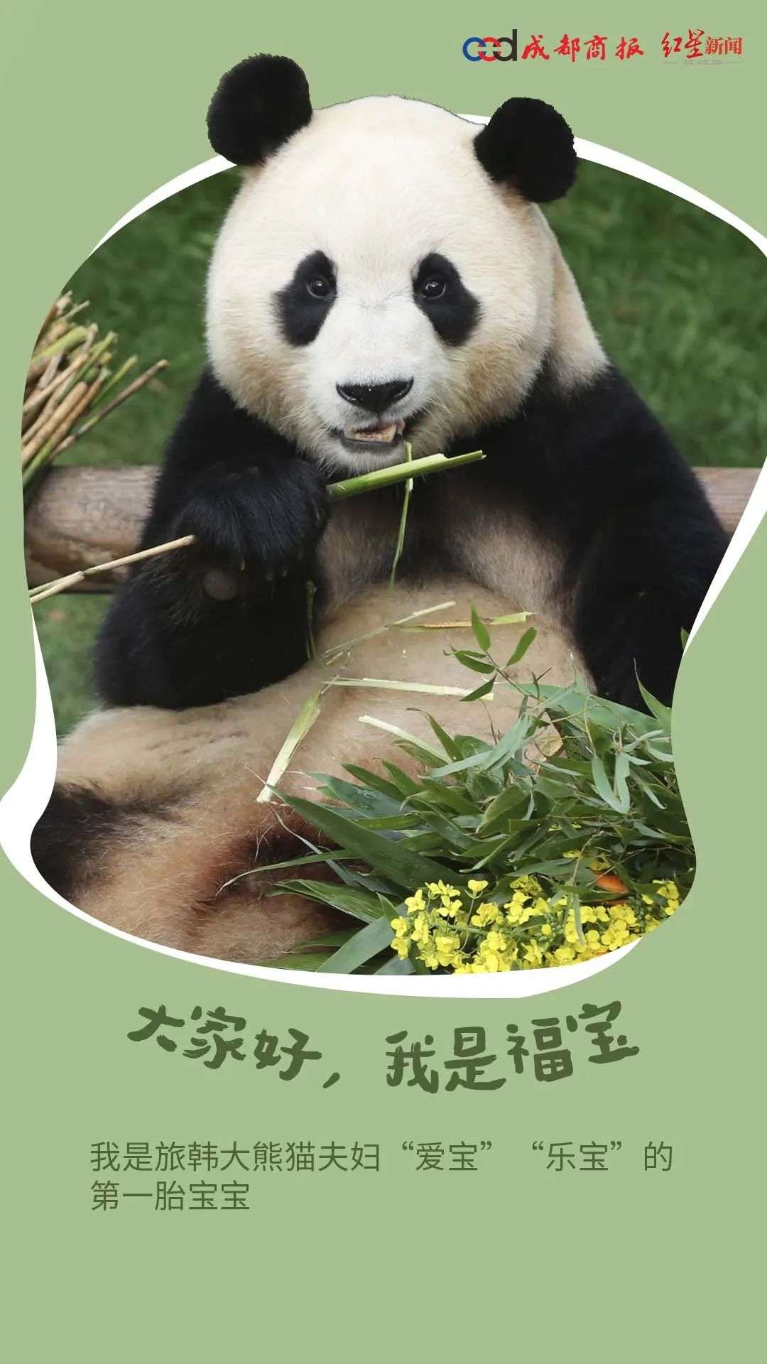 “福宝”2020年7月20日出生,是旅韩中国大熊猫“爱宝”和“乐宝”的第一胎宝宝。它也是韩国国内诞生的第一只中国大熊猫,收获了“福公主”等爱称。今年4月3日,大熊猫“福宝”结束在韩国爱宝乐园的旅居生活,回到中国并入住熊猫中心卧龙神树坪基地。