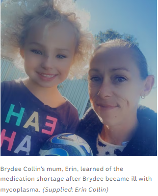 她是第一个感染支原体的人,大约五周前,随着药品短缺情况变得更加严重,她三岁的女儿Brydee也感染了支原体。
