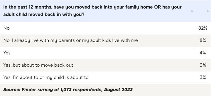 2023年的一项调查显示,13%的澳洲人(约260万人)在过去12个月内搬回了家庭住所或让成年子女搬回来同住。