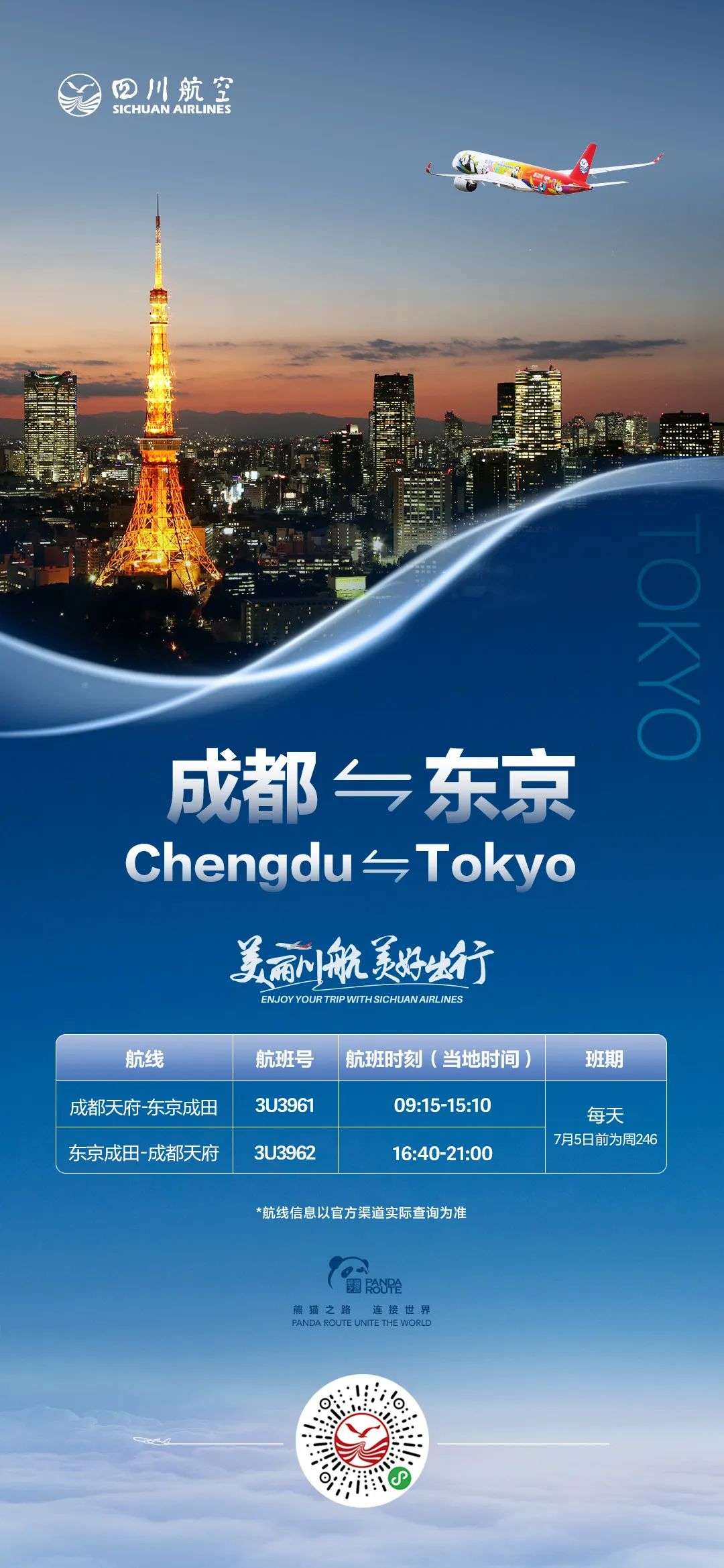 收藏汇总|川航发布7月国际及地区航班计划!7月5日起,成都天府=东京成田加密至每天一班