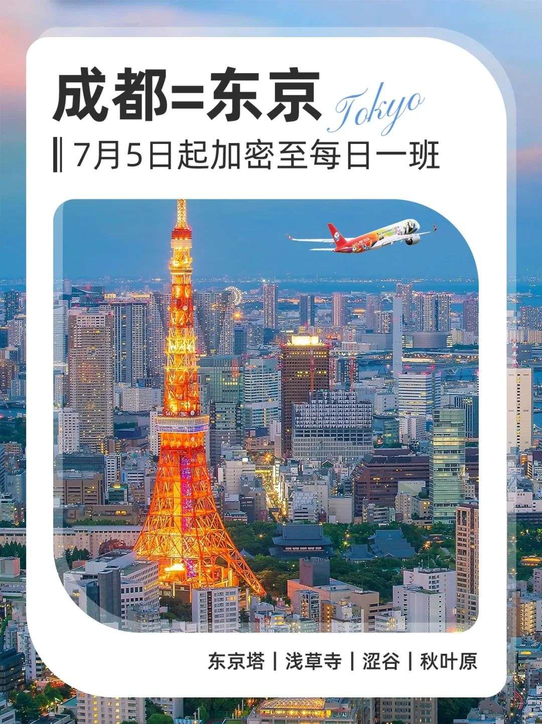 期待的东京航线加密啦!7月5日起川航加密【成都=东京】航班至每天一班,畅游东京,说走就走!