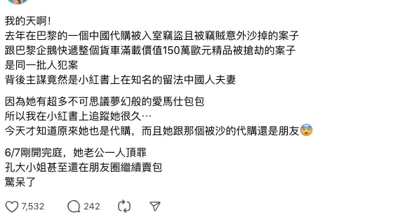 这两天,关于巴黎代购、网红“孔大小姐”及其丈夫策划爱马仕快递车大劫案、雇凶入室抢劫的信息传的沸沸扬扬。