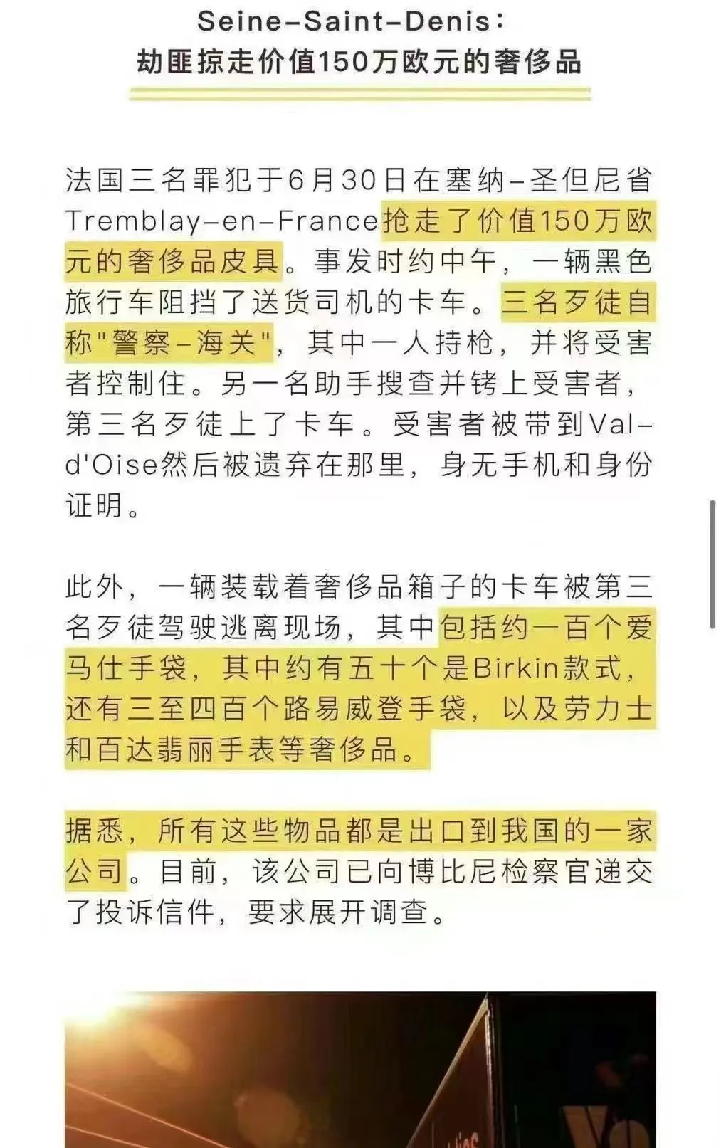 他们甚至还抢劫了当地运送爱马仕包的快递车,涉案金额高达上千万!