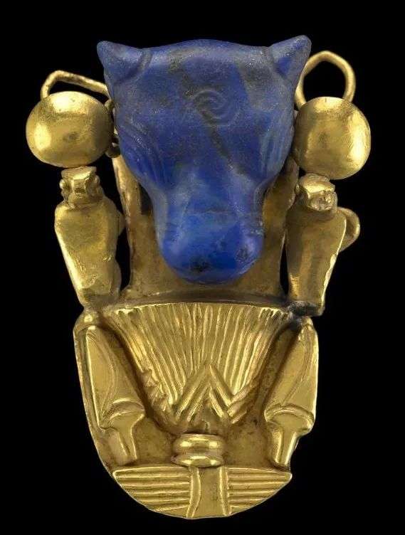 比如,一件来自开罗南部的牛头饰品(约公元前1069-664年),由黄金和青金石制成,青金石是一种产自阿富汗的深蓝色宝石,绚烂的色彩让人叹为观止。
