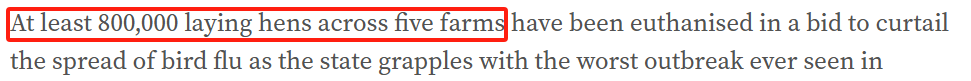 此前涉及5家农场时,已经有至少80万只产蛋母鸡在农场被安乐死,而现在这一数字将再次攀升...