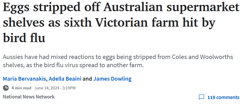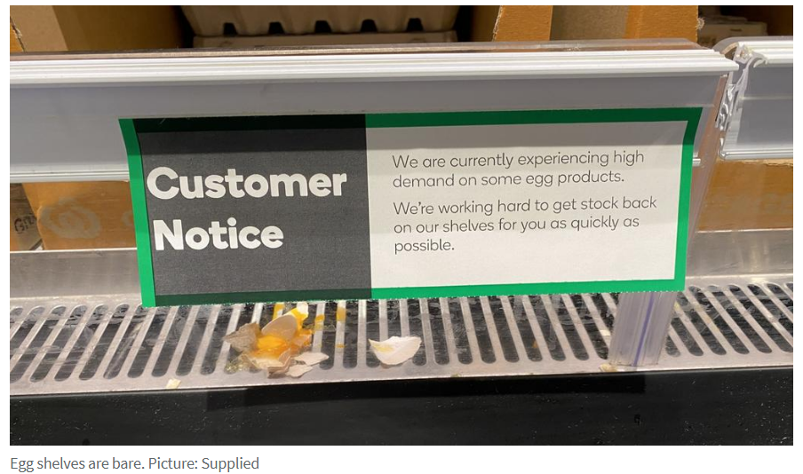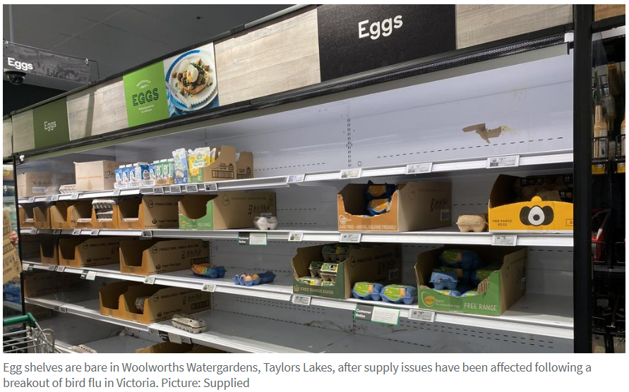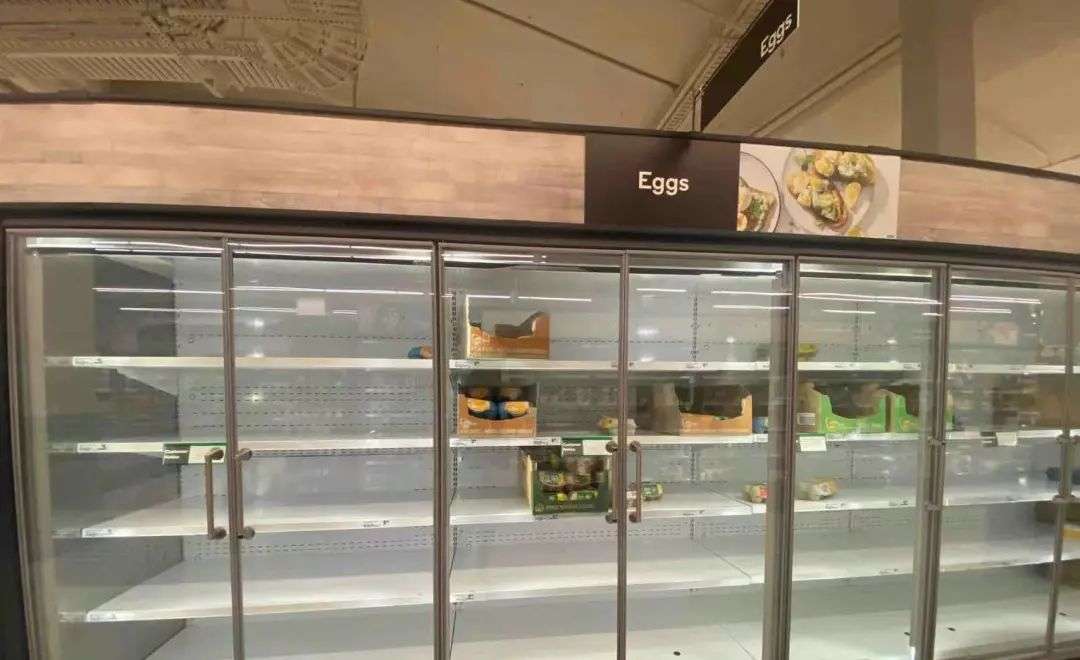 严重的禽流感疫情导致鸡蛋供应短缺,澳大利亚超市货架上的鸡蛋被抢购一空。