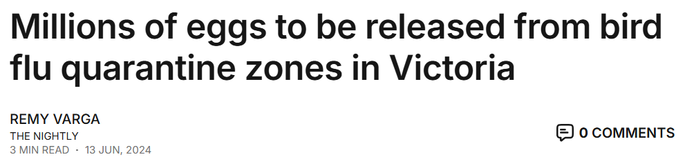 报道称,昨天,维州农业部证实,已向原本是“禽流感疫区”的农场发放了多份许可证,允许数百万枚鸡蛋转移。