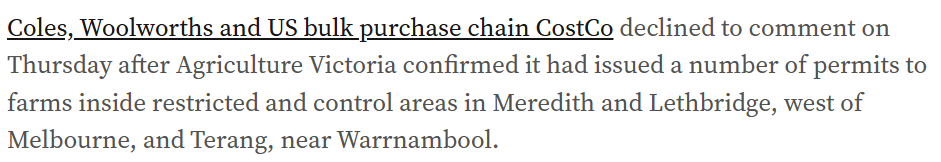 这些农场包括:墨尔本西部的Meredith和Lethbridge,靠近Warrnambool的Terang禁区和控制区内的农场。