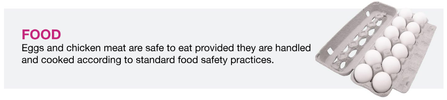 生物安全和食品监管措施共同确保了食品供应的安全,消费者可以放心,市场上的鸡肉和鸡蛋产品是安全的。”