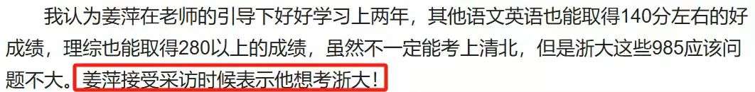 而姜萍自己说自己的梦想是考上大学,她很喜欢浙大。