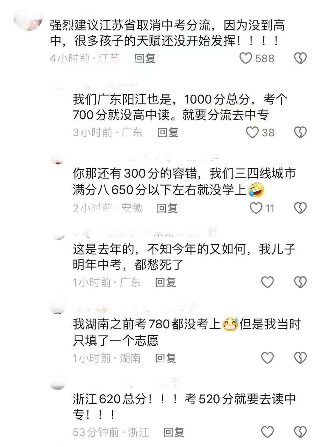 之后就有江苏的网友坐不住了,说江苏中考的分流是这样的,