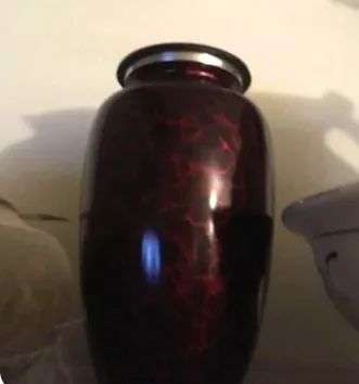 几天后,他说他花了 1,500 美元请人把安吉拉的骨灰放在骨灰盒里亲手送来,并给艾莉寄了一张骨灰盒的照片。