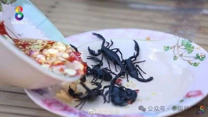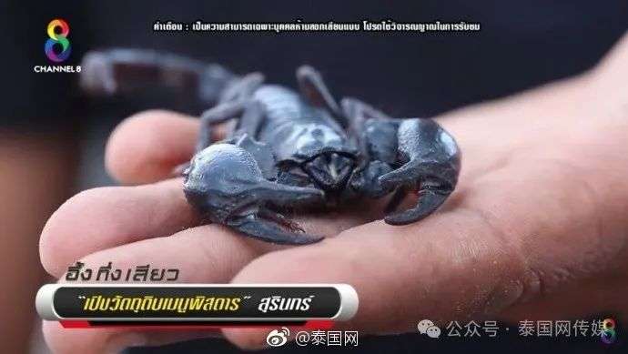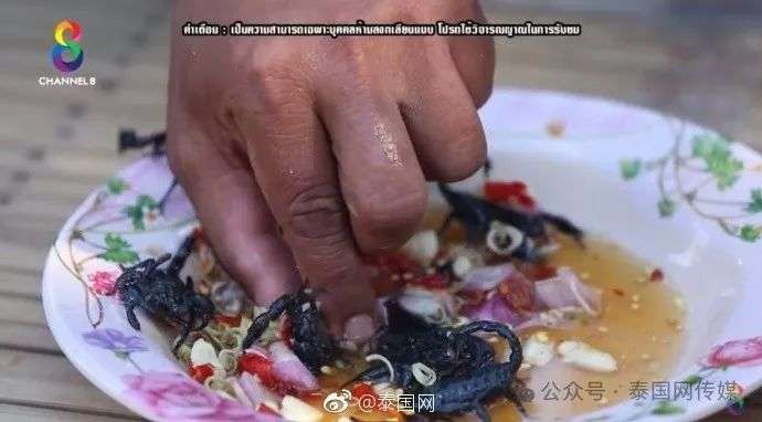 与上述“生吃蛤蚧”类似,泰国素林府出现“惊悚”美食——生吃活的黑毒蝎,可不是谁都敢吃的。