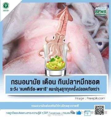 此外,泰国卫生部也就“生吃鱿鱼”一事发出提醒,生吃鱿鱼可能会食入寄生虫和细菌,建议民众烹饪熟后再食用,以降低患病风险。