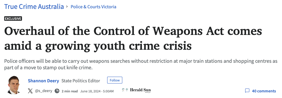 维州《武器管制法》的修订正值墨尔本青少年犯罪危机加剧之际,