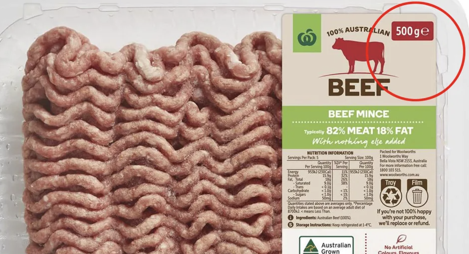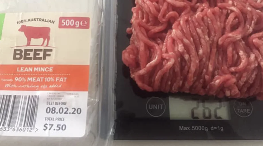 本月早些时候,一位女士发布了一张她从Woolworths购买的牛肉末的照片,抱怨包装上标明的500克实际上在秤上只有262克。