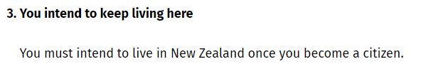 申请人必须计划在成为新西兰公民后继续居住在新西兰。