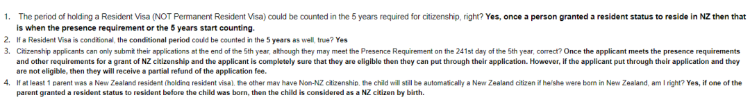 可能有些申请人此前持有的居民签是有条件的(conditional),或在一定时期内是有条件的,那么有条件的这段居民签时期会不会算到5年居住要求中呢?Citizenship office给出的答复是,算的。