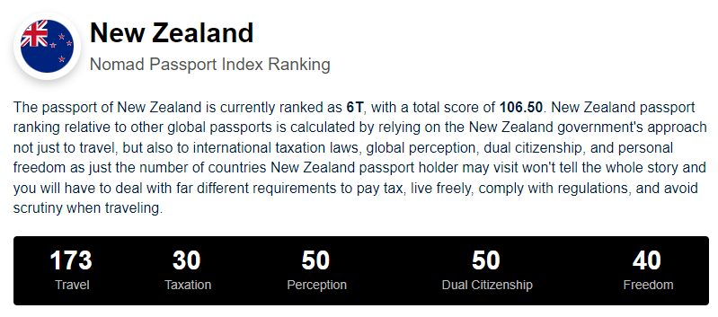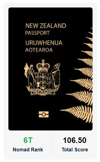 2024年Nomad护照指数显示:(Nomad Passport Index)持新西兰护照可自由进入全球173个国家和地区“护照力”可谓是十分强大!
